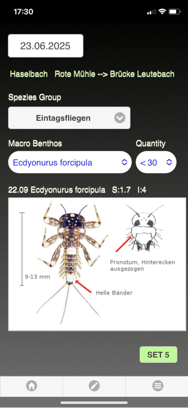 BenthosLog mobile ist ein Hilfsmittel für die Aufnahme der Bioindikatoren vor Ort. Gesichtete Organismen bleiben in ihrem Lebensraum und können mit der App bestimmt werden. Die Anzahl wird geschätzt.